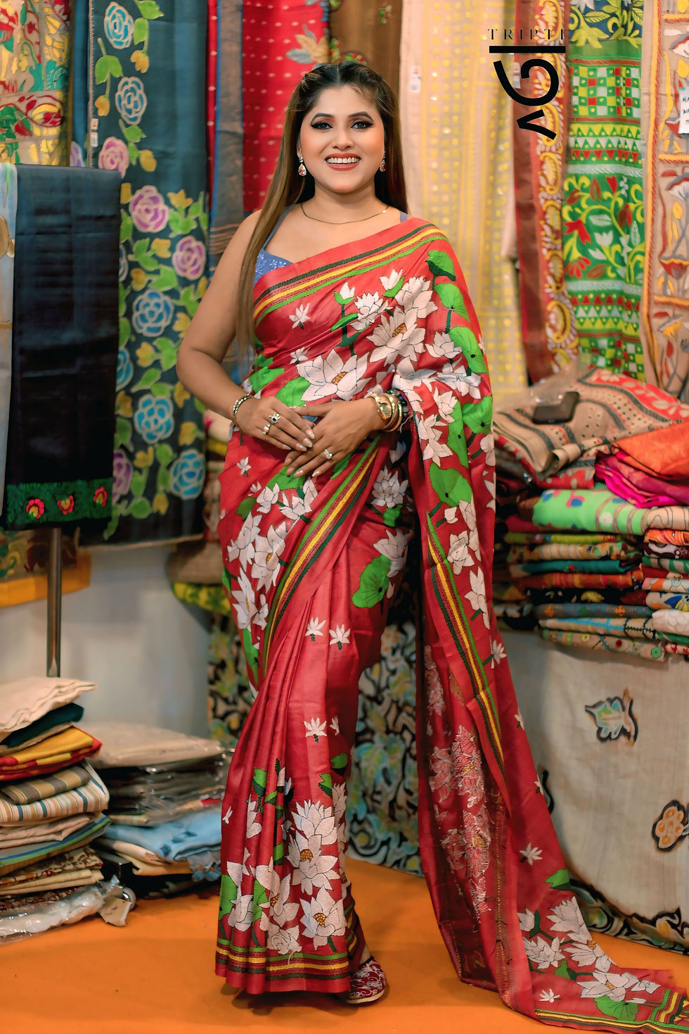 The fabric features a delicate check-like Kota texture with a gentle shimmer from tussar threads, giving it a refined drape and a luxurious yet effortless feel. Minimal sequins add a touch of sparkle without overpowering the saree’s natural beauty.